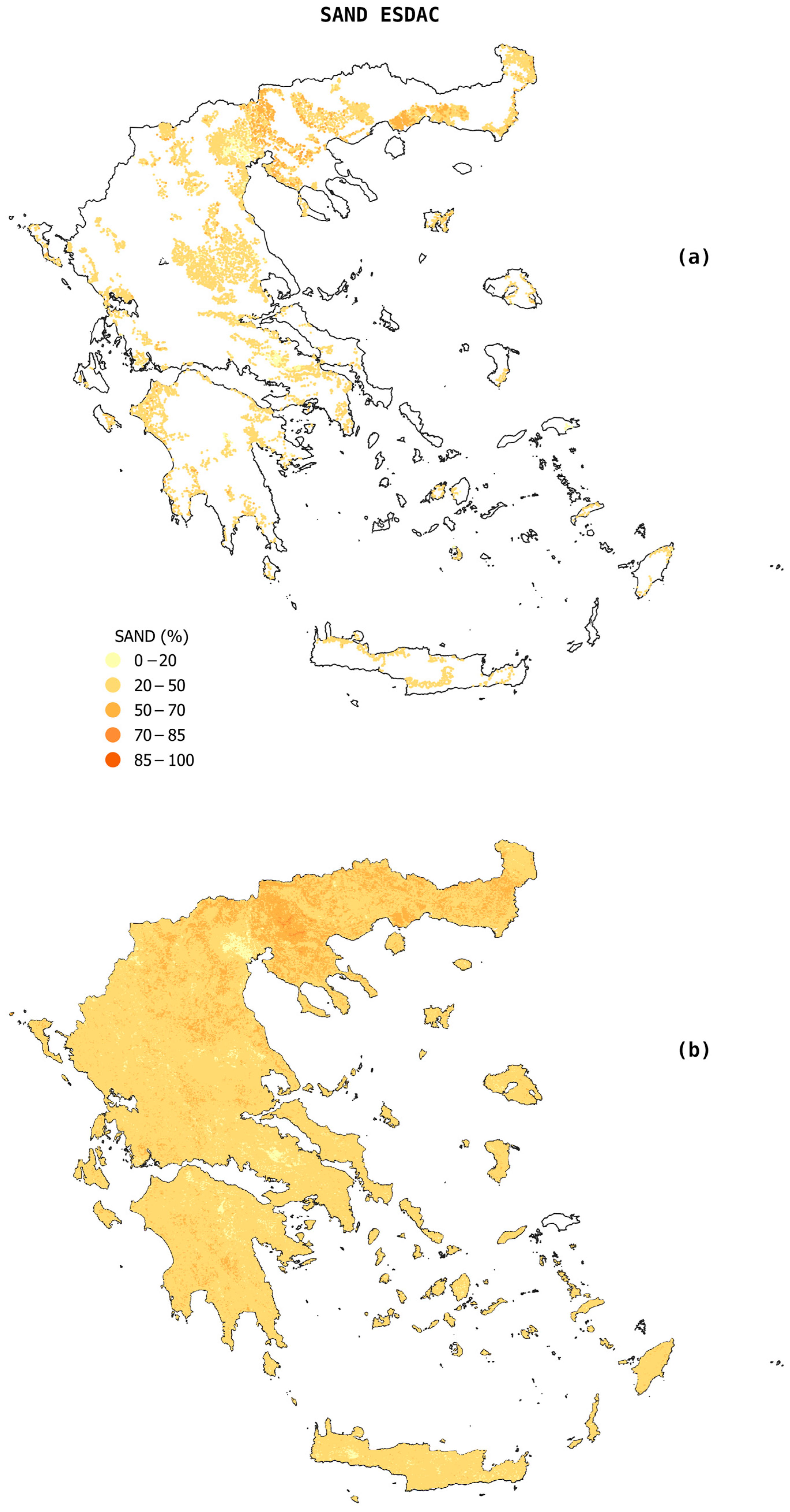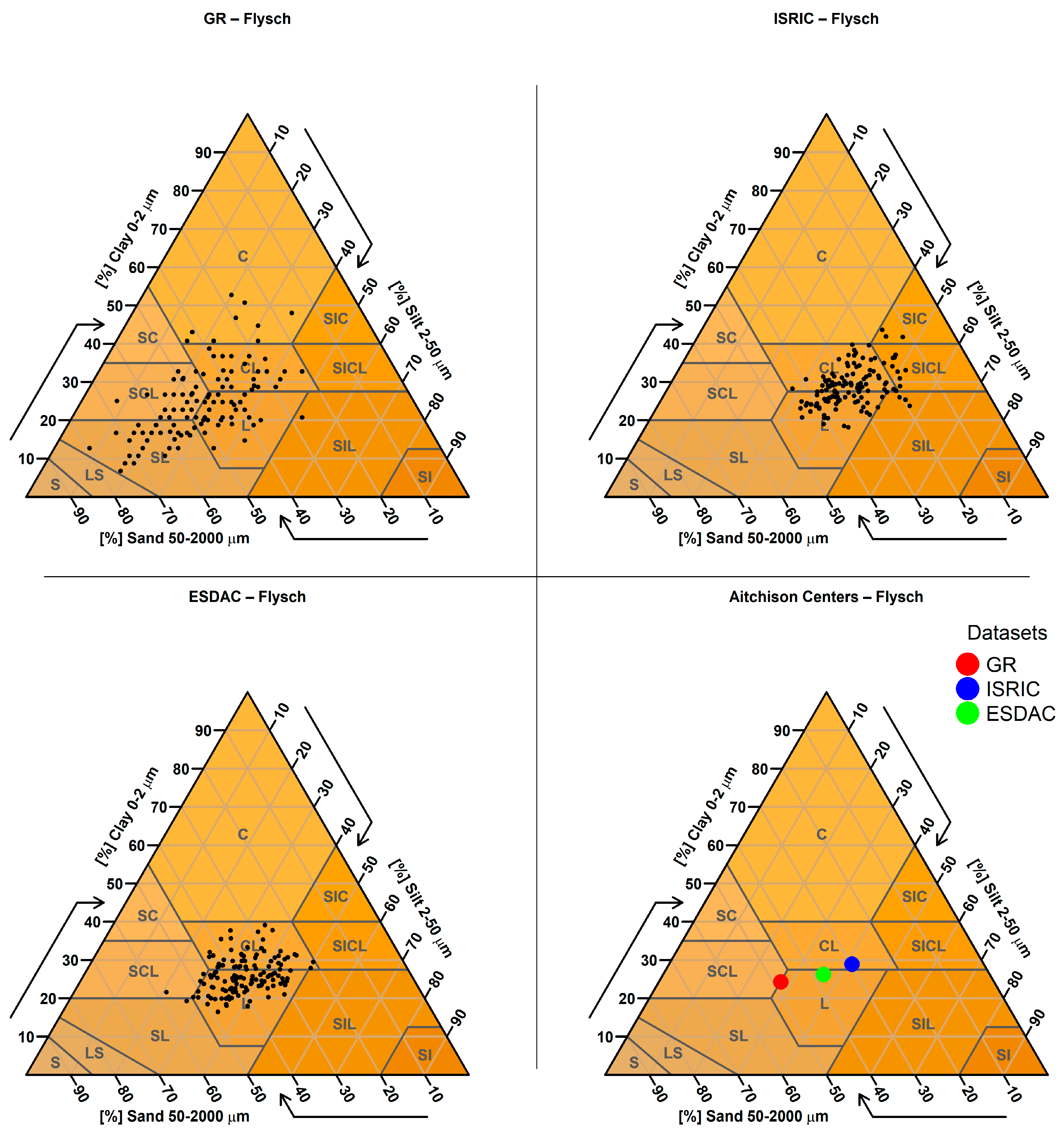- Palli Gravani, S.; Gerontidis, S.; Kopanelis, D.; Kairis, O.; Soulis, K.; Kalivas, D. Evaluation of Digital Maps of Top-Soil Properties Compared to Large-Scale Laboratory Soil Data and Synergies towards a Better European Soils’ Delineation. In Proceedings of the EGU General Assembly 2025, Vienna, Austria, 27 April–2 May 2025. [Google Scholar]