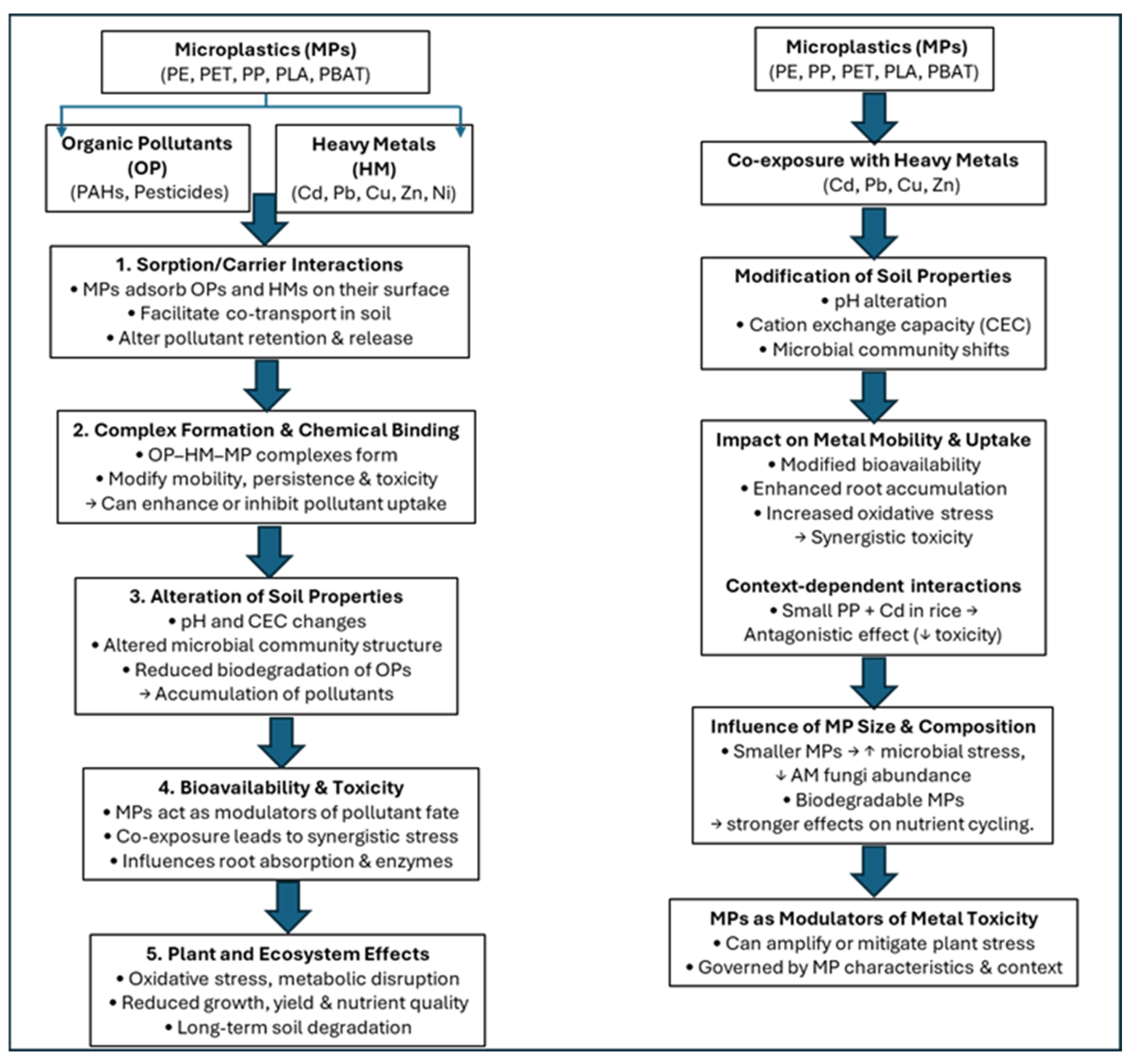 | Changes in mobility and bioavailability | MPs modify the bioavailability of heavy metals and other pollutants in soil systems. | [94] |