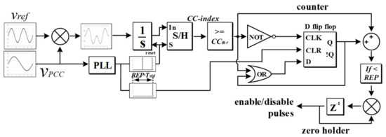 The anti-islanding technique that has been proposed in reference [2] is a harmonic-injection-based technique which is based on the cross-correlation algorithm to generate the evaluation index in Equation (1). It injects a harmonic current component with twice the base frequency aiming to distort the PCC voltage, which correlates with a reference signal (that also has twice the base frequency). The correlated value is compared against a threshold value to identify a potential islanding condition. The correlated signal is periodically stored through the sample and hold subsystem of Figure 4, and is compared against CCthr every TStd seconds. An islanding condition is detected only when the correlated value surpasses CCthr REP consecutive times (typically REP = 2), adding a countermeasure against false tripping of the inverter. Finally, when an islanding condition is identified, the inverter operation is ceased and locked-in, through the D flip-flop and zero-hold circuit of Figure 4.