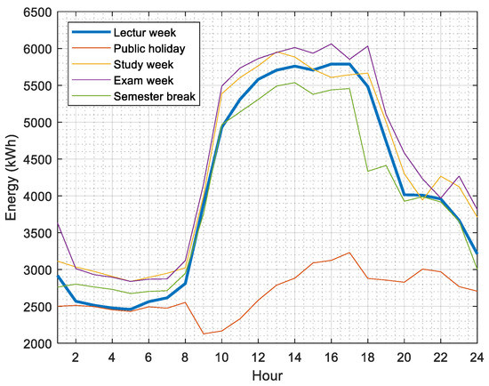 This investigation takes place in Malaysia, in Seri Iskandar, Perak, and the case study for this research is the Universiti Teknologi PETRONAS system that includes academic buildings, laboratories, street lights, sports fields, and residential villages. The load data has been gathered from the power substations distributed among the campus. The existing power supply system consists of two GTG units, where each set is 4.2 MW with a total supply power of 8.4 MW. The maximum demand during the day is 6.062 MWh with a 107.711 MWh total load demand per day. During the year, the UTP (Universiti Teknologi PETRONAS) has different load curves as the load demand is not the same during semester days. The lecturing week curve that is shown in Figure 5 is the main load curve that has been used in this study. Based on the load demand, the size of the SAPVS with a battery that can supply the UTP is calculated. The size of the PV model has been computed by (1), and the output energy generated by the array is also calculated by (3). After that, the size of the storage system has been computed by (2), and the LLP is figured out by (4).