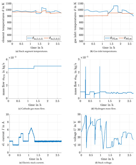 However, the installation of each storage system introduces additional cost and components which are themselves subject to wear. The extent of the arising wear effects depends on operating strategies which impose constraints on the charging and discharging rates as well as the depth of discharge. For that reason, it is interesting to operate high-temperature fuel cells such as SOFCs not only at a fixed, offline-optimized operating point but with dynamically varying load conditions [13,14]. Such dynamic operating strategies will allow a downsizing of the aforementioned electric energy storage components.