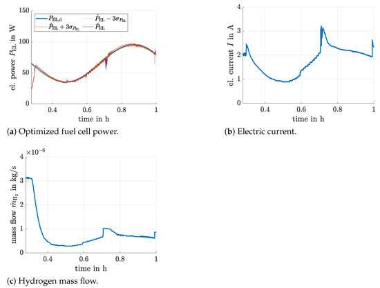 In this section, an online optimization of the electric current and hydrogen mass flow of the SOFC is implemented such that a desired operating point (specified by its desired electric power ) is attained. Simultaneously, the supplied hydrogen mass flow should be minimized. This is expressed by the cost function