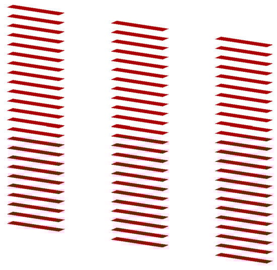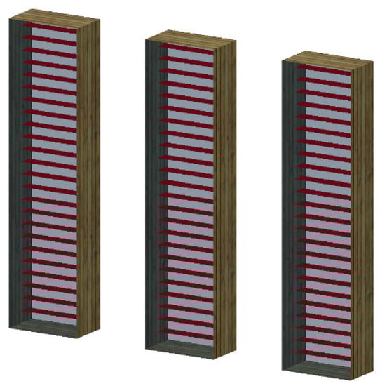 The studied virtual chamber (see Figure 1, Figure 2 and Figure 3) was equipped with three windows turned to south and one door turned to west. In front of each window was placed one DSF system. The virtual chamber was subjected to solar radiation during the entire day. The main idea of the DSF system is to heat the virtual chamber so that the occupants are thermally comfortable with an acceptable internal air quality level.