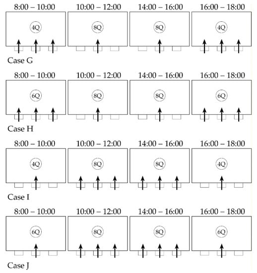 - When the airflow rate increases from 0.0389 m3/s (4Q) to 0.0583 m3/s (6Q) in the second period of the morning and in the first period of the afternoon, Cases E and F, the uncomfortable hours decrease;