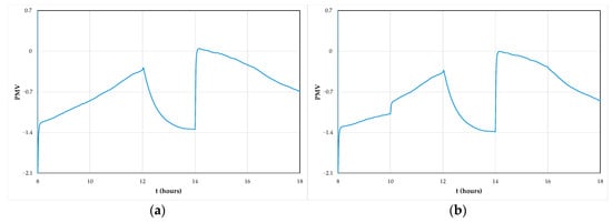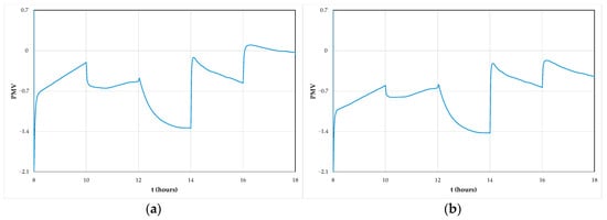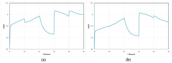 Evaluation of predicted mean vote (PMV) index for the Case C (a) and Case D (b).