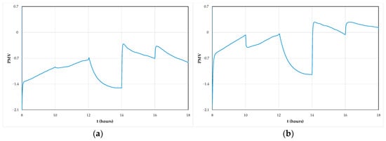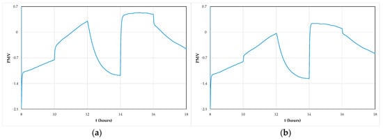 Evaluation of predicted mean vote (PMV) index for the Case E (a) and Case F (b).
