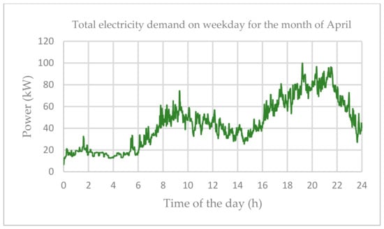 Load profile 1 for the month of April over 24 h.