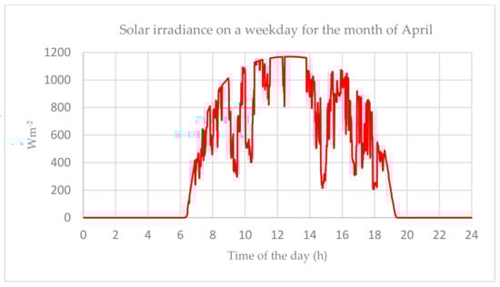 Solar Irradiance on weekday for the month of April over 24 h.