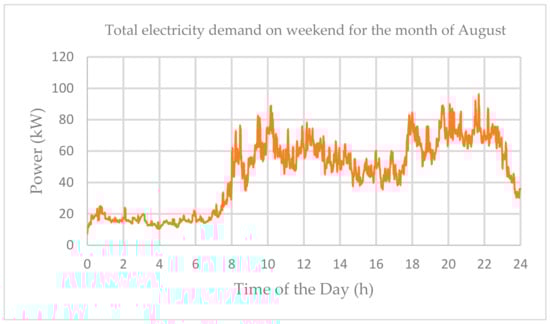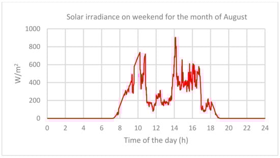 Irradiance on weekend for the month of August over 24 h.