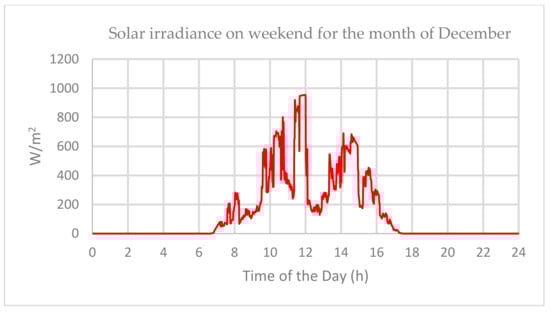 Irradiance on weekend for the month of December over 24 h.
