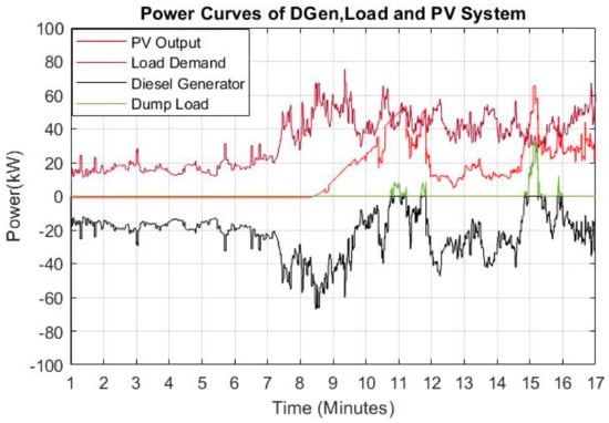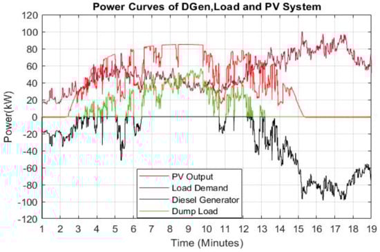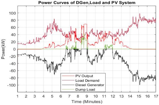 Power curves of solar PV, load demand and diesel generator.