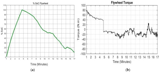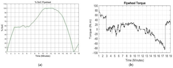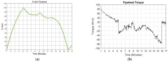 (a) %SoC of flywheel; (b) Flywheel torque.