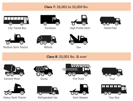 - Alternative Fuels Data Center: Maps and Data—Vehicle Weight Classes & Categories. Available online: https://afdc.energy.gov/data/10380 (accessed on 5 February 2021).