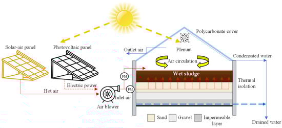 26. Wang, P.; Mohammed, D.; Zhou, P.; Lou, Z.; Qian, P.; Zhou, Q. Roof solar drying processes for sewage sludge within sandwich-like chamber bed. Renew. Energy 2019, 136, 1071–1081. [Google Scholar] [CrossRef]