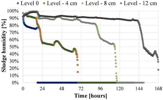 Figure 5. Trends of sludge humidity at different levels within the sludge.