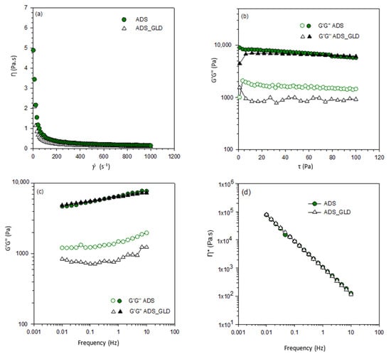 3.2.2. Rheology of ADS Mixed with GLDs