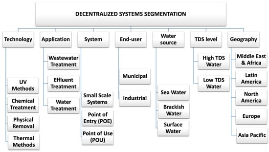 Detailed segmentation of decentralized treatment systems []. TDS: totals dissolved solids.