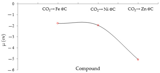The chemical potential (µ) of CO2 adsorption onto the crystal of Zn@C- GR.