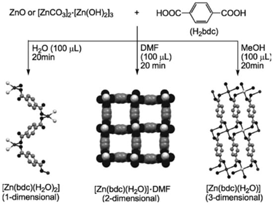 - Schlesinger, M.; Schulze, S.; Hietschold, M.; Mehring, M. Evaluation of synthetic methods for microporous metal-organic frameworks exemplified by the competitive formation of [Cu2(btc)3(H 2O)3] and [Cu2(btc)(OH)(H2O)]. Micropo. Mesop. Mat. 2010, 132, 121–127. [Google Scholar] [CrossRef]