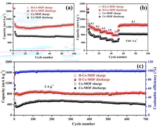 - Dong, C.; Xu, L. Cobalt- and Cadmium-Based Metal-Organic Frameworks as High-Performance Anodes for Sodium Ion Batteries and Lithium Ion Batteries. ACS Appl. Mater. Interfaces 2017, 9, 7160–7168. [Google Scholar] [CrossRef] [PubMed]
