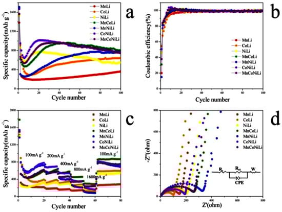 - Huang, P.-B.; Tian, L.-Y.; Zhang, Y.-H.; Shi, F.-N. Facile synthesis of polymetallic Li-MOFs and their synergistic mechanism of lithium storage. Inorg. Chim. Acta 2021, 525, 120473. [Google Scholar] [CrossRef]