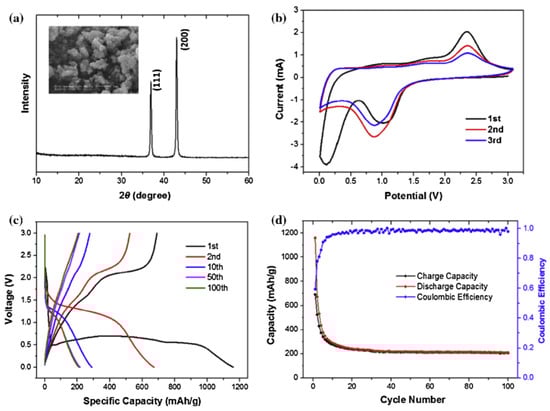 - Chen, X.; Chen, C.; Zhang, X.; Huang, T.; Yu, A. Mesoporous Co–CoO@NC Micro-Disk Derived from ZIF-9 as Bifunctional Catalyst for Lithium-Oxygen Batteries. Chem. Sel. 2018, 3, 9276–9283. [Google Scholar] [CrossRef]