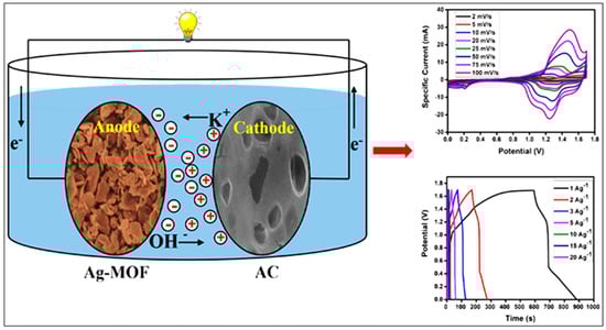 - Shalini, S.S.; Balamurugan, R.; Velmathi, S.; Bose, A.C. Systematic Investigation on the Electrochemical Performance of Pristine Silver Metal–Organic Framework as the Efficient Electrode Material for Supercapacitor Application. Energy Fuels 2022, 36, 7104–7114. [Google Scholar] [CrossRef]