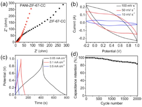 - Wang, L.; Feang, X.; Ren, L.; Piao, Q.; Wang, Y.; Li, H.; Wang, B. Flexible Solid-State Supercapacitor Based on a Metal–Organic Framework Interwoven by Electrochemically-Deposited PANI. J. Am. Chem. Soc. 2015, 137, 4920–4923. [Google Scholar] [CrossRef]