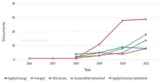 Renewable energy is considered an important subject worldwide due to humanity’s quest to address the challenges of global warming and climate change []. With the ratification of the Paris Climate Agreement in 2015, nations have pledged to curb their greenhouse gas emissions from current levels of 50 billion to zero by the year 2050 []. One approach to achieve this lofty goal is the transition from fossil fuel economy to renewable energy technologies (RET) []. However, RETs are currently prone to various challenges ranging from intermittent power generation [] and expensive installation infrastructure [] to grid-related challenges and high energy production costs particularly in the absence of subsidies and carbon lock-in []. To address these challenges, scientists are exploring various algorithmic or numerical tools such as artificial intelligence (AI), neural networks (NN), and deep/machine learning (D-/ML) to explore and examine sustainable solutions. Hence, it can be reasonably hypothesized that the field of MLARE research has grown out of the need to identify, examine, and address the challenges of RETs using ML. Over the years, numerous researchers have actively become involved in the area producing numerous highly cited documents published in various source titles including journals and conference proceedings. Table 1 displays the most highly cited published documents on MLARE indexed in the Scopus database from 2012 to 2021.
