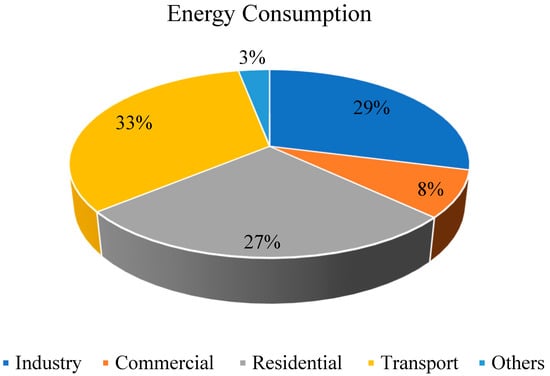 Global energy consumption has grown dramatically in the last few decades and reached 636 EJ in 2021 compared to 230 EJ in 1971, representing a growth of around 276% in 50 years [1]. Among all sectors, buildings are considered one of the significant contributors, accounting for around 40% of total global energy consumption, and are responsible for 30% of greenhouse gas emissions. Moreover, buildings’ energy consumption is expected to grow by approximately 184.2 EJ by 2050. Figure 1 shows the global energy consumption by sector, with around 60% being consumed in residential and commercial buildings [2].