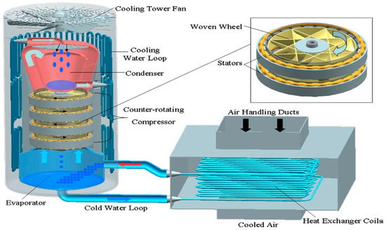 - Wobst, E.; Kalitzin, N.; Apley, R. Turbo Water Chiller with Water as Refrigerant. In Proceedings of the International Compressor Engineering Conference at Purdue, West Lafayette, IN, USA, 12–15 July 2004. [Google Scholar]