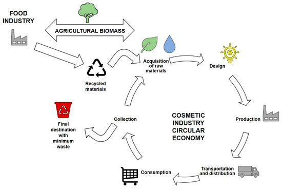 One strategy to minimize the problem of pollution derived from cosmetic ingredients is the use of products recovered from the manufacture of other industrial items. Valuing and using waste have become an economic and sustainable practice in the cosmetic industry and are known as “upcycling” or “circular beauty”. For example, the food industry produces organic waste, a known source of phenolic compounds such as flavonoids and phenolic acids, among other various derivatives that would normally be discarded [9].
