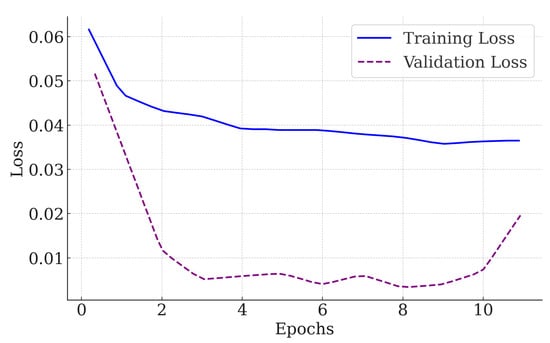 The training results and subsequent test data evaluations affirmed the efficacy and potential applicability of the proposed CNN–GRU model. The model’s architecture managed to accurately predict wind turbine pitch response, with a training loss of 0.036 and a lower validation loss of 0.018, indicating that the model effectively captured generalizable patterns and excelled with new, unseen data.
