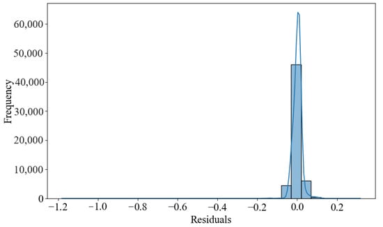 Evaluating the statistical metrics linked to the model’s errors (residuals) yielded important insights into its predictive tendencies. The model exhibited a consistent, though modest, trend of overestimating the target variable, as indicated by an average error value of 0.03. While this pattern is subtle, its persistence is significant. The small scale of the mean error points to a relatively balanced model that does not heavily favor overestimation or underestimation. This finding is further supported by the median error, recorded at 0.033. The positive nature and close proximity of both the mean and median error values highlight a consistent slight overestimation trend in the model’s forecasts.