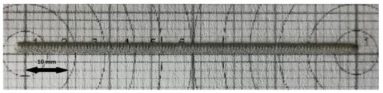 Example of a powder track deposited using the vibration-assisted powder feed.