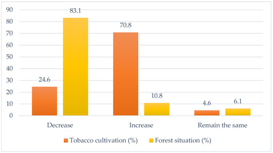 There exists a close relationship between tobacco cultivation and forest situations (like forest clearing), and in this connection, through this study, we tried to explore the respondent’s perceptions of tobacco cultivation and forest situations. Accordingly, we collected the response data and constructed the following Figure 2 below: