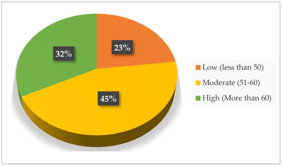 The majority of respondents (45%) had a moderate perception of the harm that tobacco farming does to the environment and health of tobacco farmers, based on data from Figure 3. Only 23.1% of respondents had a low perception, compared to 32.3 percent who did. This is a result of the respondent’s observations and understanding of the field under study. This is a result of the respondents’ observations and knowledge of the studied region. Any man’s awareness, knowledge, and education can shape his perception. A person can become more knowledgeable and reasonable, which increases his awareness, through education. Alotaibi et al. [40] discovered similar results, indicating that 65% of farmers expressed a moderate level of anxiety about climate change. Grimberg et al. [41] found that, whereas 48.3 percent of American farmers expressed concern over climate change, 86.7 percent expressed moderate to high concern about how it might affect agricultural productivity.