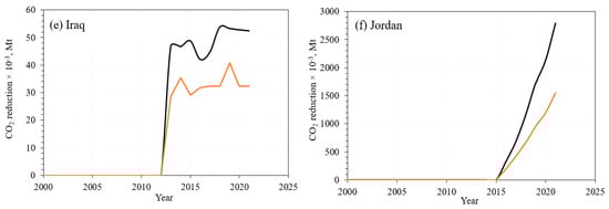 Data from the International Energy Agency (IEA) were used to calculate carbon-emission saving using the electric power capacity generated by the PV panels from 2000 to 2021 in each country of the studied region using the following equation: