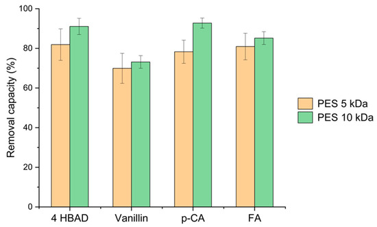 Removal capacity of phenolic acids with the PES 5 and 10 kDa membranes.