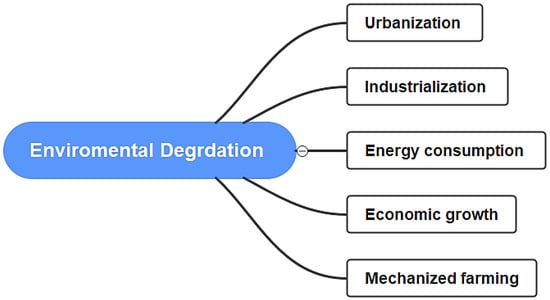 Juknys [32] distinguished primary decoupling from environmental pollution and secondary decoupling from natural resource consumption, whereas dual decoupling occurs when primary and secondary decoupling coincide. Currently, three decoupling methods are commonly explored to examine the fundamental association between energy use and the degradation of the environment due to energy use. One of these methods is the Taipo decoupling technique, which outlines three types: primary, secondary, and doubled decoupling, as shown in Figure 2 [32,33].