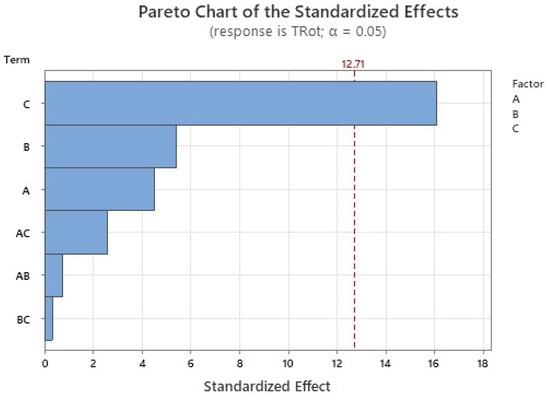 - Pareto diagram of effects of factors A, B, and C, also associating the interactions AB, BC, and AC.