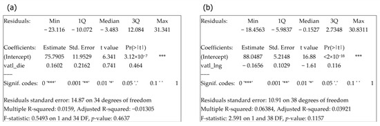 Results of the detailed statistical analysis in R Studio software (a) in case of diesel tractor; (b) in case of LNG tractor.