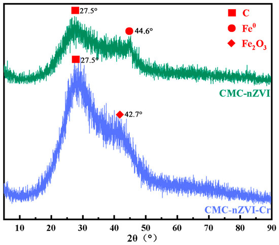 XRD images of CMC−nZVI and CMC−nZVI−Cr.