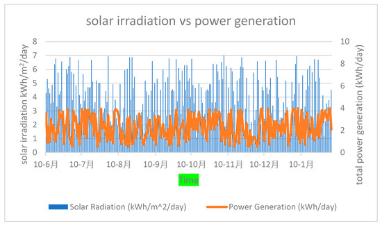 Solar radiation vs. Total power generation [11]. Solar radiation: the amount of energy emitted by the sun through electromagnetic form. Power generation: the process of generating electricity through energy conversion emitted from the sun.
