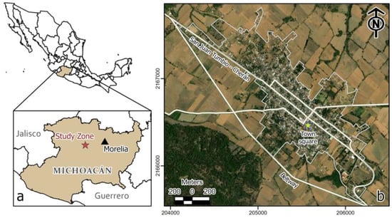 (a) State of Michoacan; (b) target community of San Francisco Pichátaro and its geographical location.