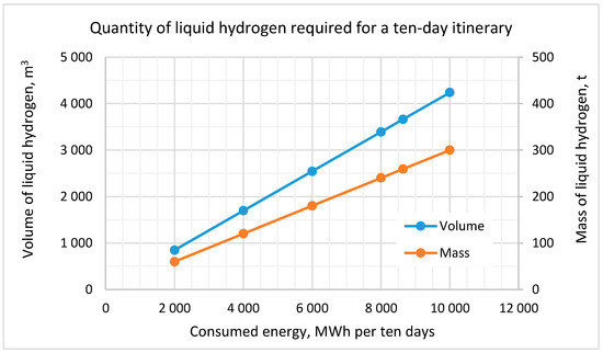 | 10-Day Itinerary | Energy [MWh] | Fuel Mass [tons] | Total Volume of Fuel Storage Needed [m3] |