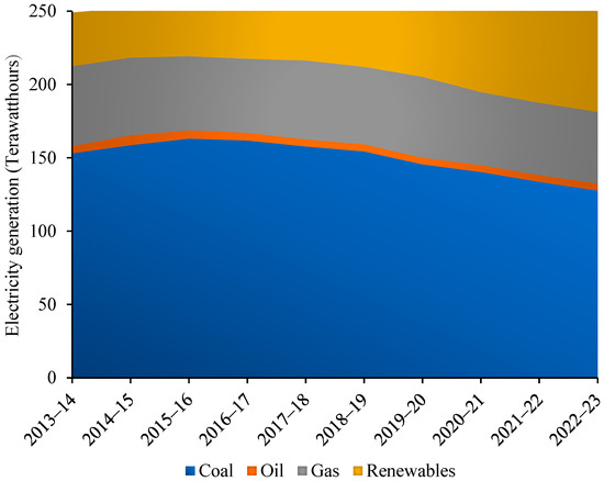 - Department of Climate Change, Energy, the Environment and Water. Australian Energy Update 2023. 2023. Available online: https://www.energy.gov.au/publications/australian-energy-update-2023 (accessed on 22 July 2024).