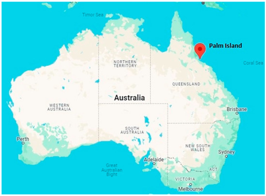 The study intends to supply clean energy to the remote Palm Island in Australia. Figure 6 shows the geographical location of this island, which is in regional North Queensland, 60 km away from the Great Barrier Reef World Heritage area and Great Barrier Marine Park. The climate of this tropical region is projected to experience a mean temperature rise of 0.68 °C by 2030 and 1.25 °C by 2050, along with a sea level rise and prolonged heatwaves. This island suffers from approximately 6530 t CO2-equivalent emissions per year, with most of the emissions originating from diesel-based electricity generation (28%) and the transport sector (23%). While diesel-based generator is the primary energy source, there is a provision of RE supply covering 20% of the load; however, only 4.5% of it is functional. The high cost of energy, coupled with high energy demand, is placing financial stress on the communities of this tropical island [39].