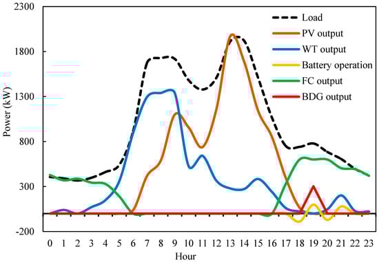 The size of the biodiesel generator is optimized, considering a search space between 100 to 800 kW. The fuel intercept co-efficient of the generator is taken as 0.028 L/h/kW, representing the biodiesel consumption at no load conditions, and the slope is 0.253 L/h/kW, representing the marginal fuel consumption [36]. The capital, replacement, and O&M costs of BDG are AUD 714/kW, AUD 357/kW, and AUD 0.04/kW/operating hour, respectively. The price of biodiesel is taken as 1.70 AUD/L in this study.