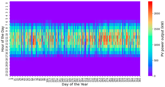 Solar PV provides unbounded energy without releasing harmful GHG [41] and is one of the major sources of RE in the system. The size of PV is optimized using HOMER to meet the load demand. The capital cost of PV is AUD 930/kW with an O&M cost of AUD 14/kW/year. The lifetime of the PV is 25 years referring to the same duration of the project, so no replacement cost is needed. The derating factor is 88% which is used to consider any power loss effect on the real output power of the PV [42] due to weather conditions, dust, or others. Based on the solar radiation, PV panel temperature, and derating factor, the PV output is determined in the following Equation (7) [42]:
